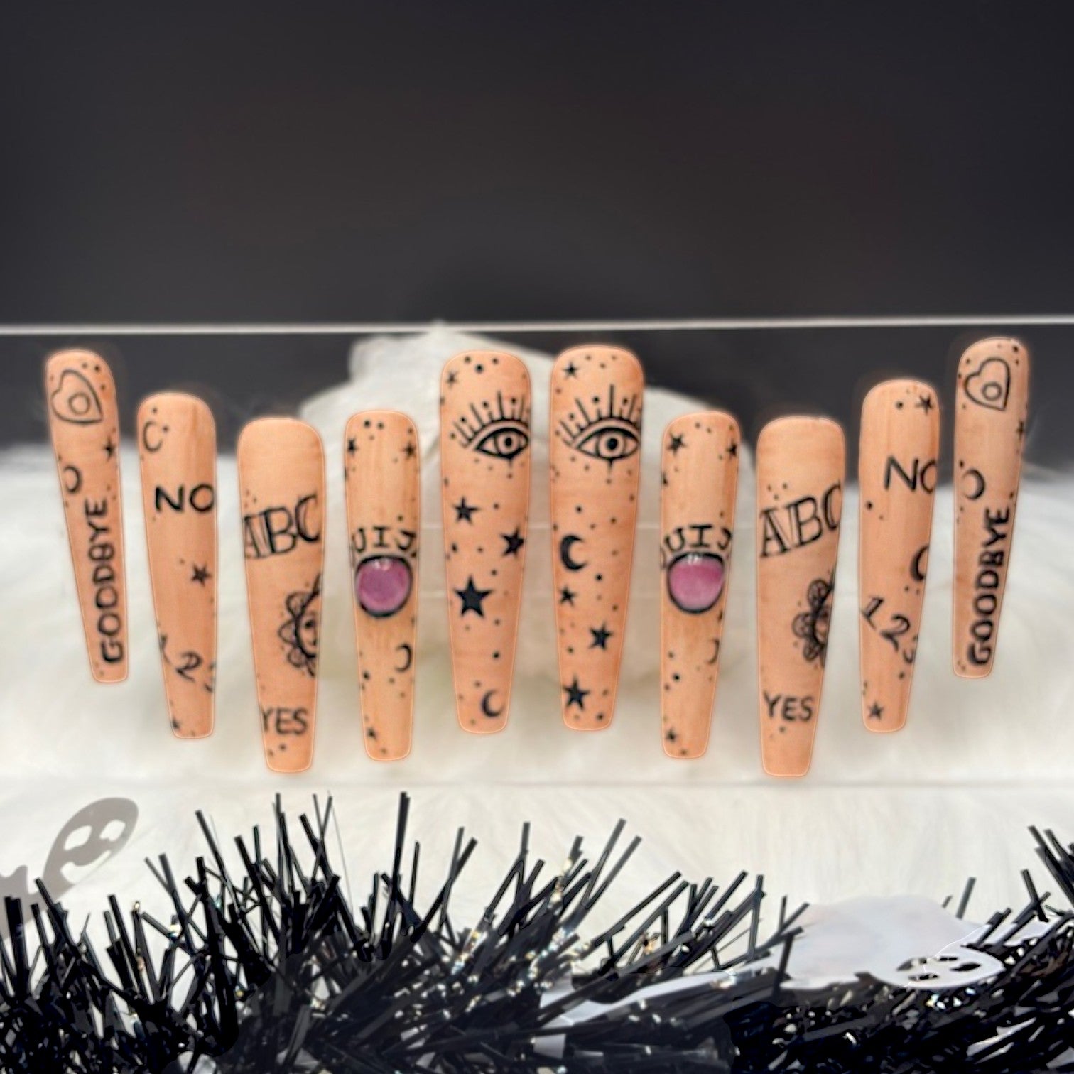- 🖌️ Hand-painted ouija and celestial art with salon-quality gel polish